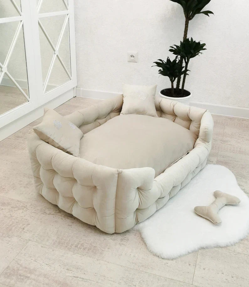 Stellen Sie sich eine Hundehütte vor, die an die Eleganz eines gepolsterten Sofas erinnert, perfekt für unsere vierbeinigen Freunde. Diese Hundehütte hat eine robuste Struktur und ein raffiniertes Design mit einer weichen Polsterung, die Ihren Hund mit unvergleichlichem Komfort umhüllt.