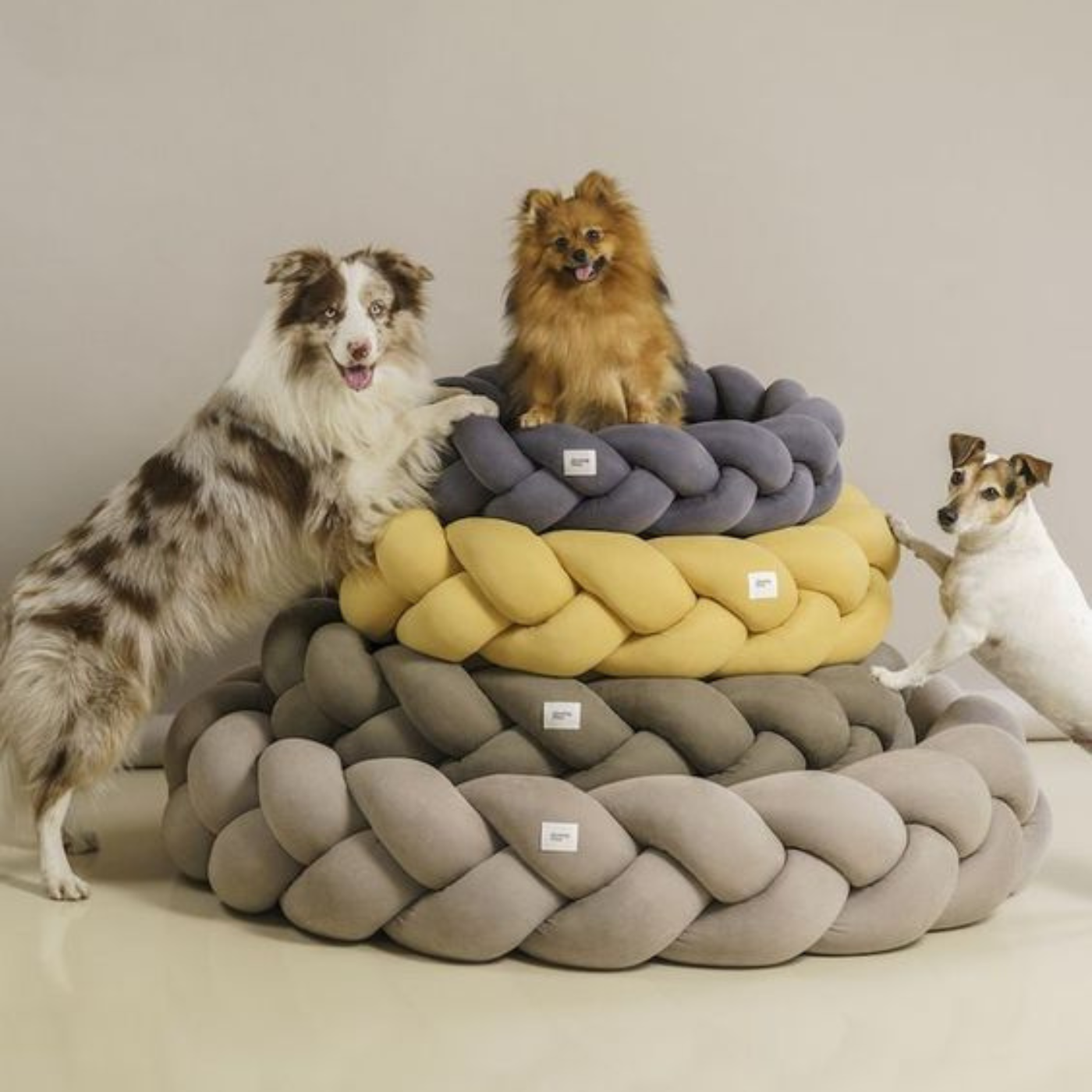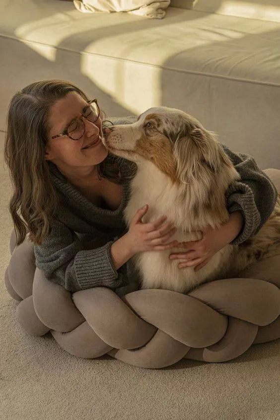 Die Ränder aus weichem, gewebtem Stoff sorgen nicht nur für ein einzigartiges und raffiniertes Aussehen, sondern bieten auch zusätzlichen Halt für Hals und Kopf Ihres Tieres. Der Innenraum ist mit einem gepolsterten, kuscheligen und bequemen Kissen ausgekleidet, ideal für eine tiefe und erholsame Ruhe.